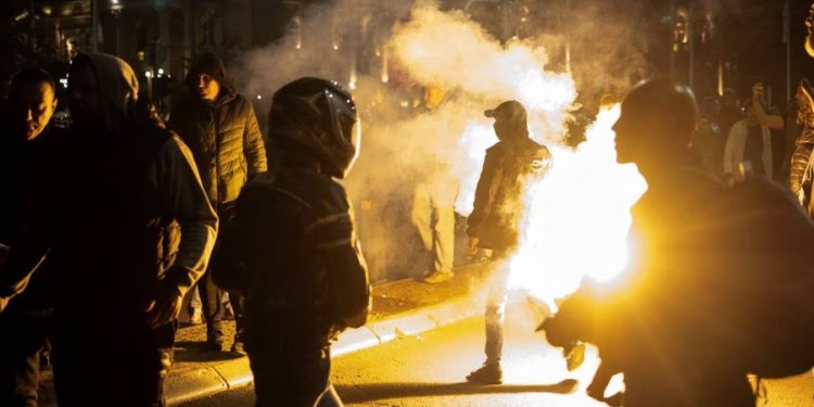 Dita e parë e protestës së saj u zhvillua në atmosferë tensioni. Mes dy palëve fluturonin shishe, pjesë të gardhit metalik dhe mjete piroteknike, ndërsa nga “Qacilandi” dëgjoheshin këngë nacionaliste. Në atë anë ndodhej edhe Novkoviqi.