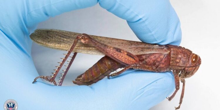 Ekspertët bujqësorë të CBP-së që punojnë në aeroportin e Detroitit gjetën karkalecin e gjallë egjiptian (Anacridium aegyptium) në bagazhet e një udhëtari që vinte nga Shqipëria.