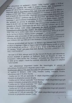 Në dosjen e prokurorisë të siguruar për “BalkanWeb”, thuhet se nga ekzaminimi i pakove objekt ekspertimi, të përzgjedhura nga 6 grupe, të fiksuara si provë materiale gjatë këqyrjes së kontenierit të vendosur në trajlerin me targa DR 3819 E, në magazinën e kompanisë “Arbi Garden” në Maminas, në sipërfaqene poshtë ambalazhit kanë shenja transekologjike, si formë vijash, thellime si ‘Toni Montana’, ‘BIKE’, ‘ 020’, ‘CR-77’, ‘Mollë 3’, ‘777’, e ‘54’, e kanalizime me forma e pozicione të ndryshme.