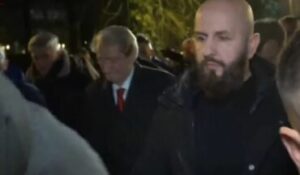 Kreu i PD Sali Berisha ka dalë nga selia e PD i ndjekur nga deputetët dhe anëtarët e PD.
