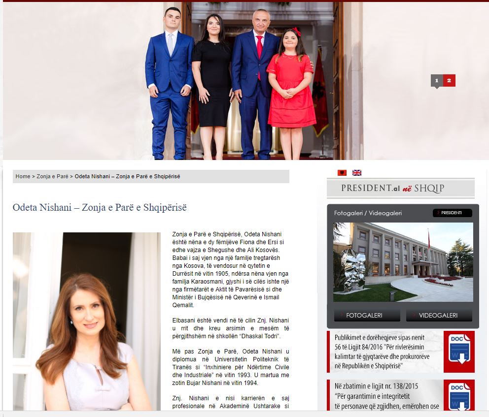 Një gafë e rëndë kjo e Presidencës. Një ditë pasi Meta ka marrë detyrën, në faqen rezulton ende zonja Odeta Nishani Zonjë e Parë./JavaNews/a.m.