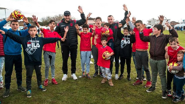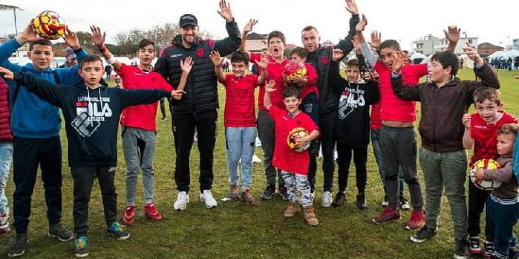 Në vijim të fushatës së ndërmarrë nga Presidenti Duka, punonjësit e FSHF dhe futbollistët e kombëtares, sot dy prej tyre Alban Hoxha dhe Lorenc Trashi vizituan kampin në Fushë-Krujë,ku dhuruan fanela të kombëtares dhe topa për fëmijët. Ata biseduan me të vegjlit që kanë kaluar momente të tmerrshme duke i inkurajuar. Kuqezinjtë improvizuan edhe nje ndeshje futbolli me vogëlushët. /e.s/