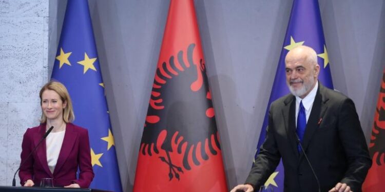 Kryeministri Edi Rama zhvilloi një konferencë me kryediplomaten e BE, Kaja Kallas, e cila ndodhet në Tiranë. Kreu i qeverisë theksoi edhe njëherë ambicien për të mbyllur negociatat për vendin tonë deri në vitin 2027.