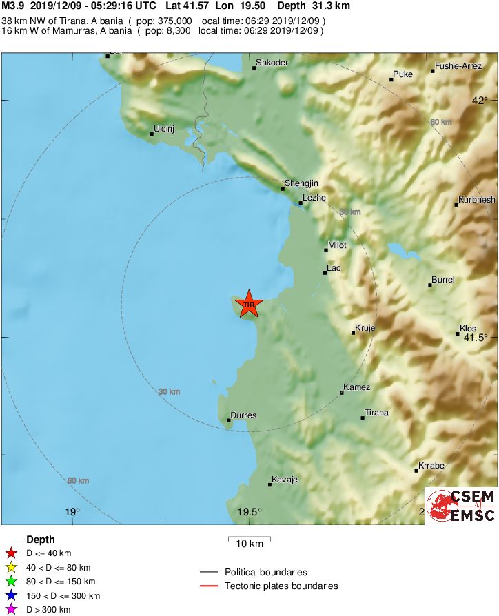Një tjetër lëkundje e fortë tërmeti iu ka bërë zgjimin shqiptarëve, mëngjesin e kësaj të hëne 9 dhjetori.