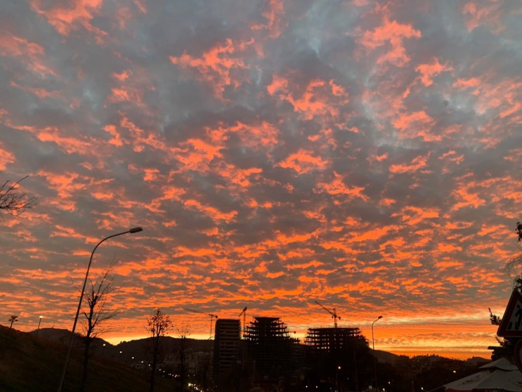 Pasditja e sotme i ka ofruar qytetave të Tiranës një “spektakël” të vërtetë resh. Kushtet e motit kanë bërë që perëndimi i diellit këtë pasdite të dukej kaq i veëantë.