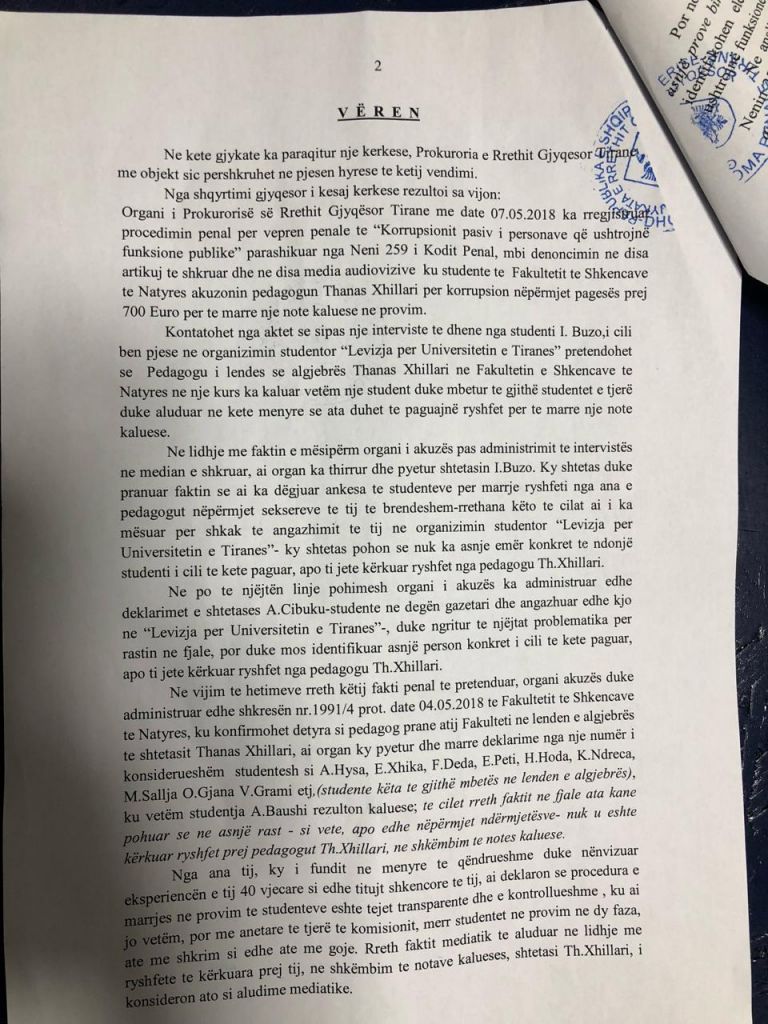 Por tani, meqë kalvari poshtërues ndaj tij ka kaluar dhe përmes filtrit të Prokurorisë dhe Gjykatës, ai së paku ndjehet i pari pedagog skrupuloz i Universitetit që ka bërë dhe vetingun juridik të tij.