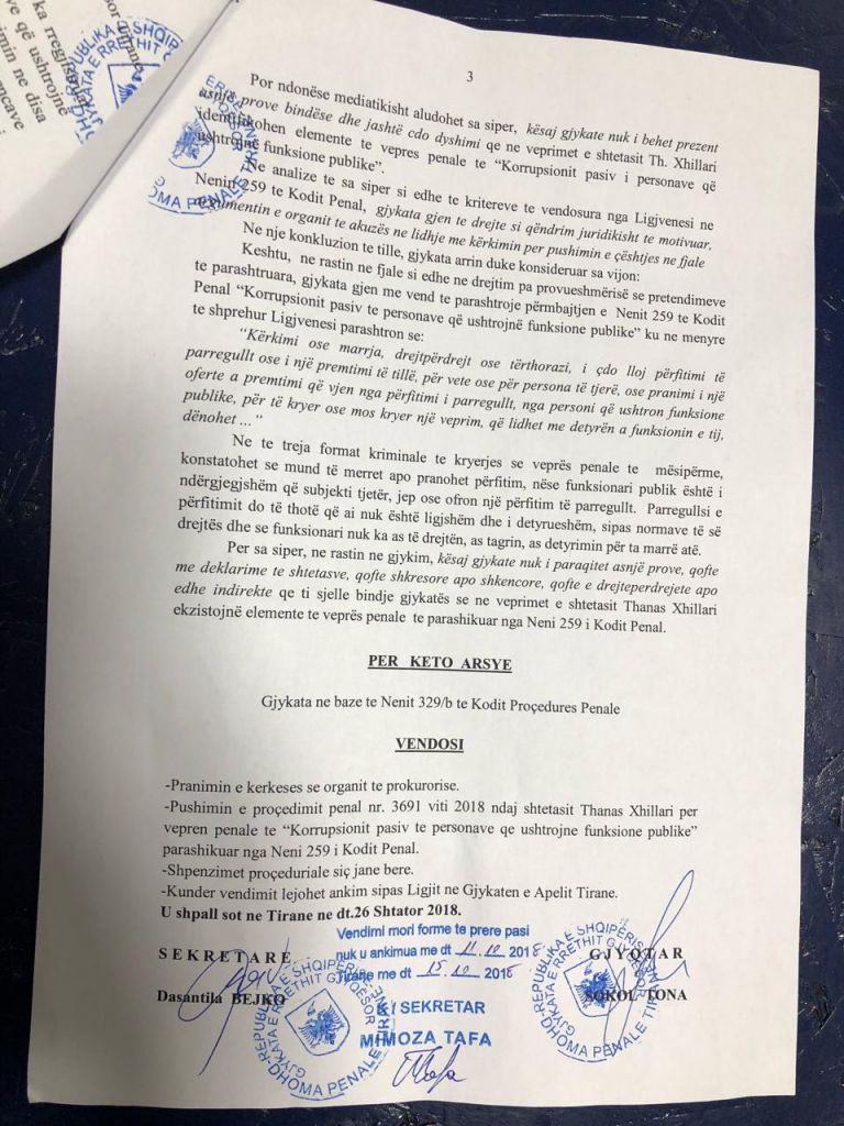 Prokuroria, e cila është aktivizuar nga “indiciet e shtypit” me procedurën “kryesisht”, ka mbyllur hetimet pas gjashtë muajsh dhe gjykata ka vendosur pushimin e çështjes, pasi nuk qëndron asnjë akuzë.