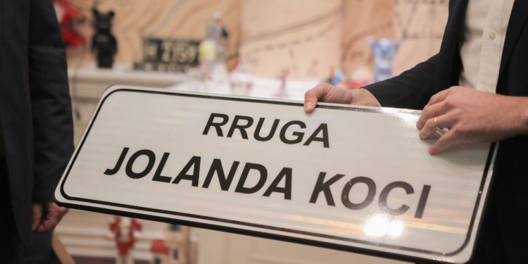 Në shenjë simbolike, kryebashkiaku Erion Veliaj i dhuroi djalit të shkenctares me famë botërore tabelën me emrin e rrugës pranë ish-Fushës së Aviacionit, që kufizohet me Rr. “Artan Lenja” dhe Rr. e “Dafinave”, u shpreh se, nderimi i merituar që i bëhet sot Jolanda Koçit shërben edhe si një frymëzim për rinjtë.