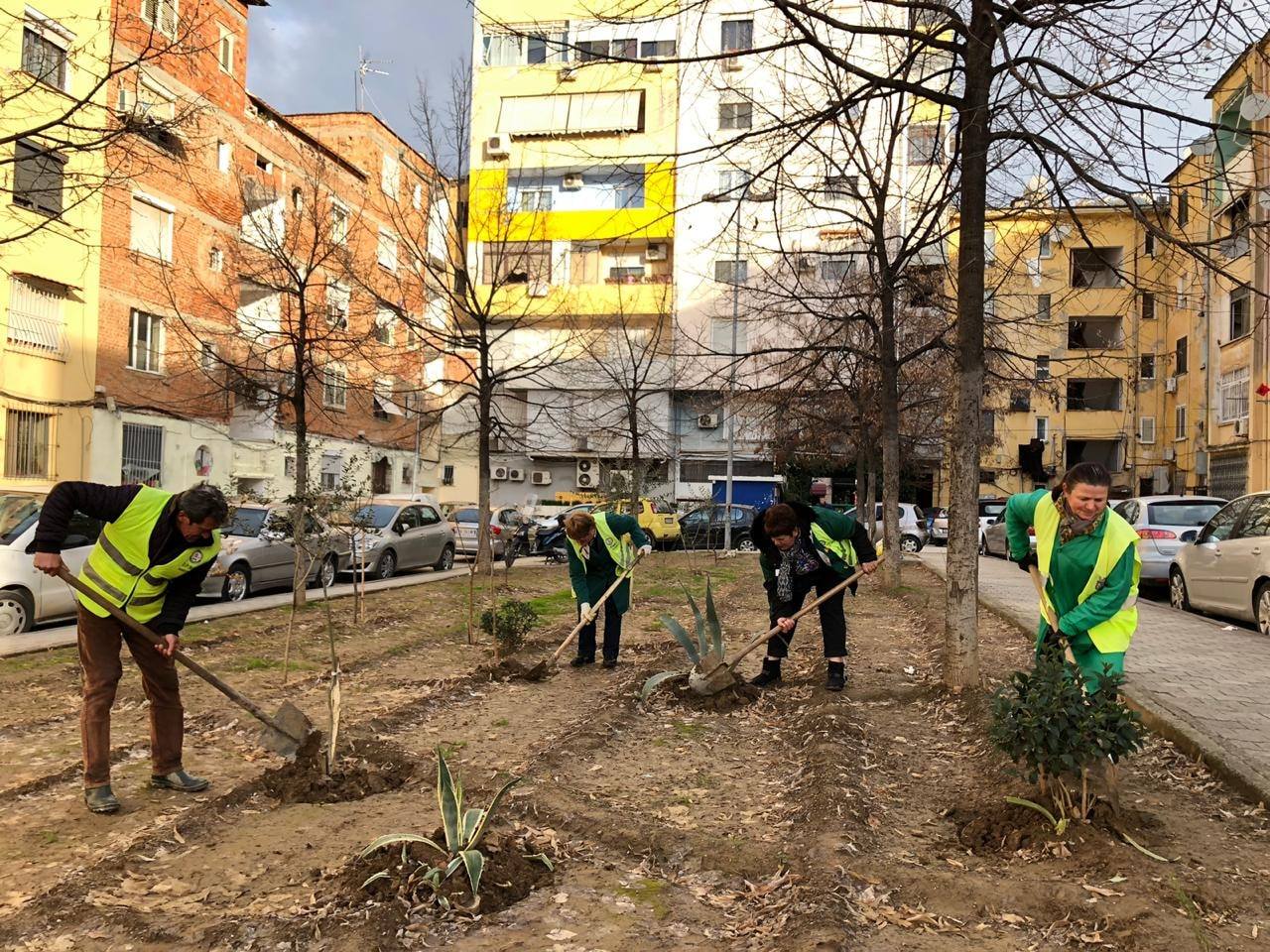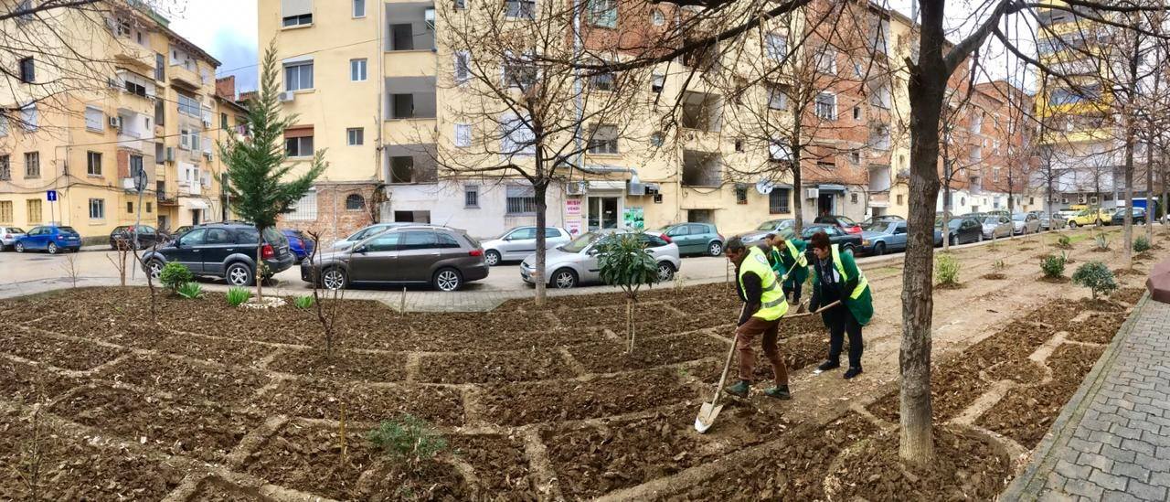 Hapësira e zaptuar mes pallateve nga inertet dhe plehrat ka dalë totalisht në pah. Favorizuar edhe nga klima, punonjësit e Ndërmarrjes Nr 1 të Bashkisë së Tiranës kanë kryer edhe mbjelljen e luleve si dhe të pemëve të reja duke përmirësuar ndjeshëm jetesën e komunitetit.