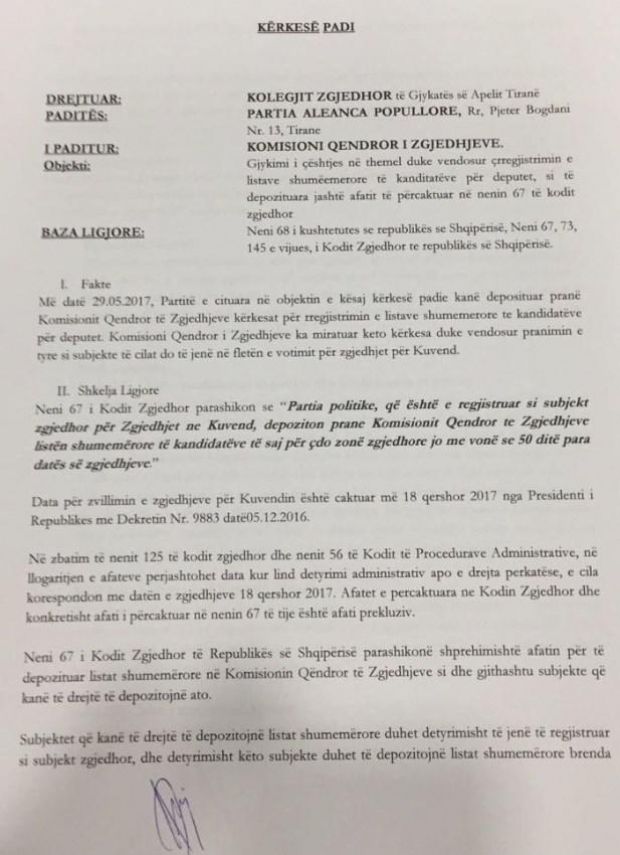Pas partive të opozitës, ankimim kundër listave të kandidatëve në Kolegjin Zgjedhor ka bërë edhe Partia Aleanca Popullore (PAP) me kryetar Artur Dojakën.