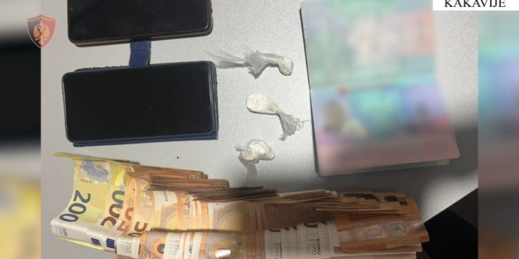 Policia ka sekuestruar lëndën narkotike kokainë, 3700 euro dhe 250 fishekë gjuetie.
