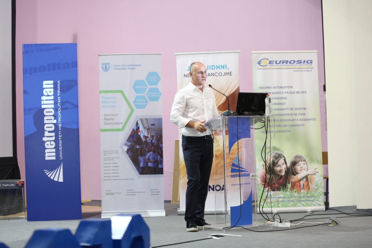 “Jam i lumtur që shoh se teoria e marrë në universitet përkthehet në produkt konkret në fushën e biznesit. Ky ka qenë një qëllim i Universitetit Metropolitan Tirana, edhe me krijimin e “Metropolitan Incubator”, inkubatori i parë brenda një universiteti shqiptar. Për të realizuar këto ide duhet këmbëngulje që fillon nga ëndrra dhe puna. Edhe unë jam ende në ndjekje të ëndrrës sime, pasi çdo mëngjes kërkoj dhe mendoj për ide të reja. Sot ju keni thjesht një ide, sigurisht që do të keni ditë të vështira, ndoshta edhe dështime, por nuk duhet të dorëzoheni. Edhe vetë Universiteti Metropolitan Tirana u krijua në një kohë shumë të vështirë, kur shumë universitete kishin zgjedhur që thjesht të shpërndanin diploma. Por ne zgjodhëm cilësinë dhe ja ku jemi sot, me një institucion që frymëzon një të ardhme më të mirë. Ka një shprehje që thotë nëse doni të ecni shpejt, ecni vetëm, por nëse doni të shkoni larg, ecni në grup”, u shpreh themeluesi dhe Presidenti i Universitetit Metropolitan Tirana, Arjan Çukaj.
