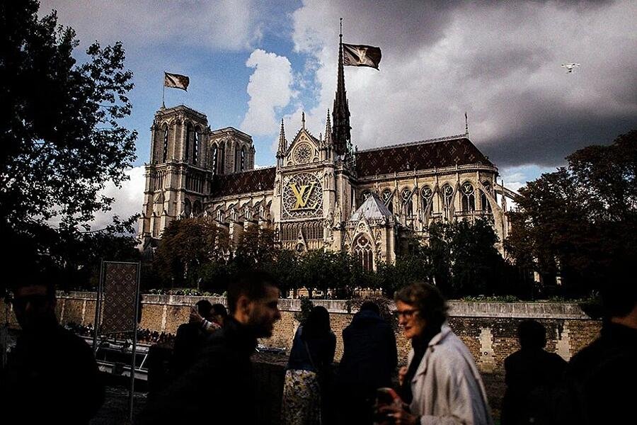 5.Louis Vuitton Notre Dame -Drejtori i artit i studios braziliane Entrequadra Novas Midias e imagjinonte katedralen e rindërtuar për nder të kompanisë Louis Vuitton. Motivi i Louis Vuitton shtrihet mbi çati me inicialet e guximshme në dritare.