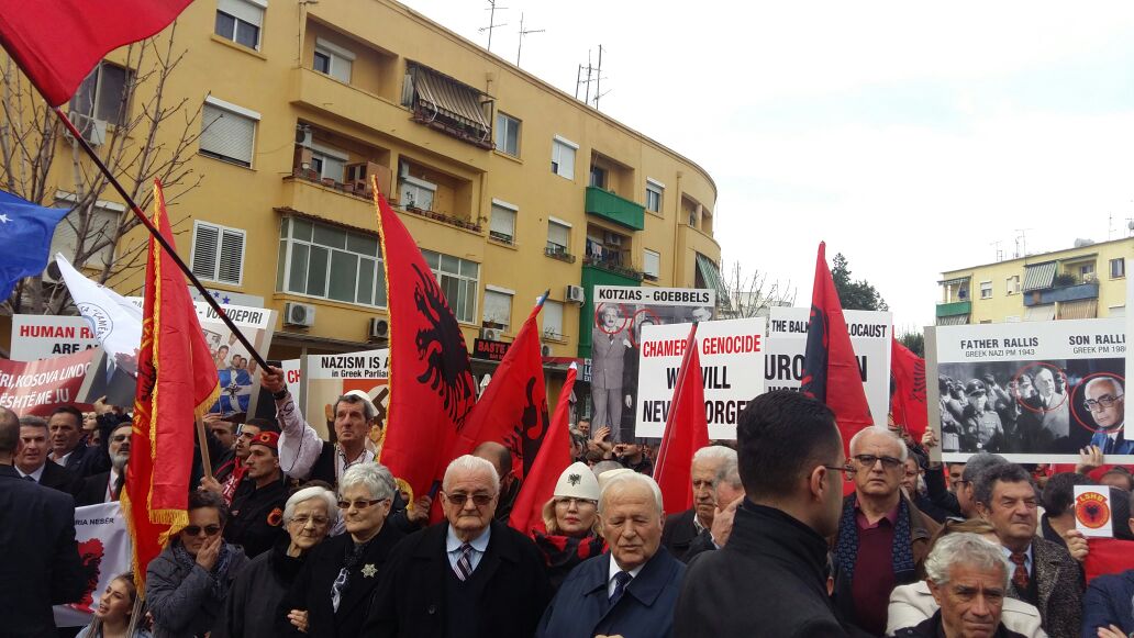 Shoqata ‘Çamëria’, së bashku me Partinë për Drejtësi Integrim dhe Unitet protestuan sot para ambasadës greke në Tiranë kundër marrëveshjes Shqipëri-Greqi, që sipas tyre fshin emrin “Çamëri”.