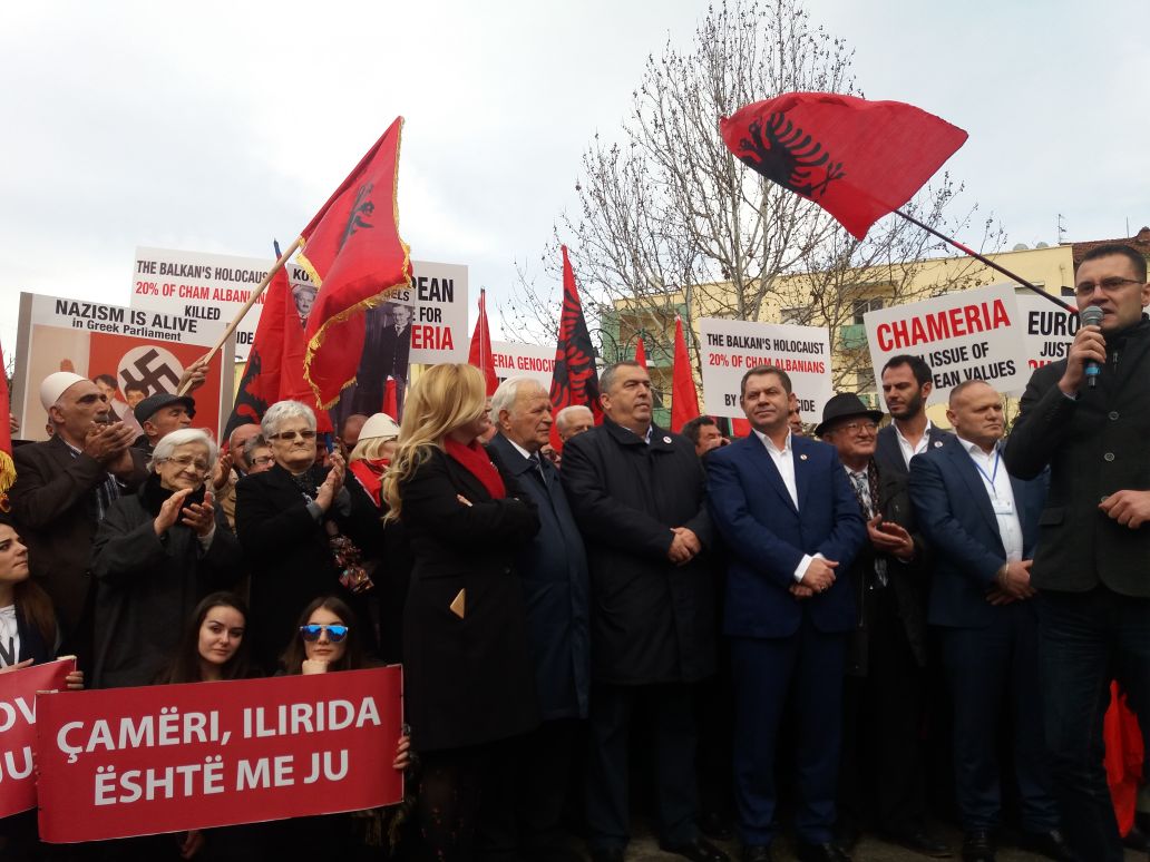 Dhjetëra qytetarë çamë me flamuj kuqezi por edhe me plisa të bardhë kanë marrë pjesë në protestë duke kërkuar transparencë për marrëveshjen Shqipëri-Greqi.