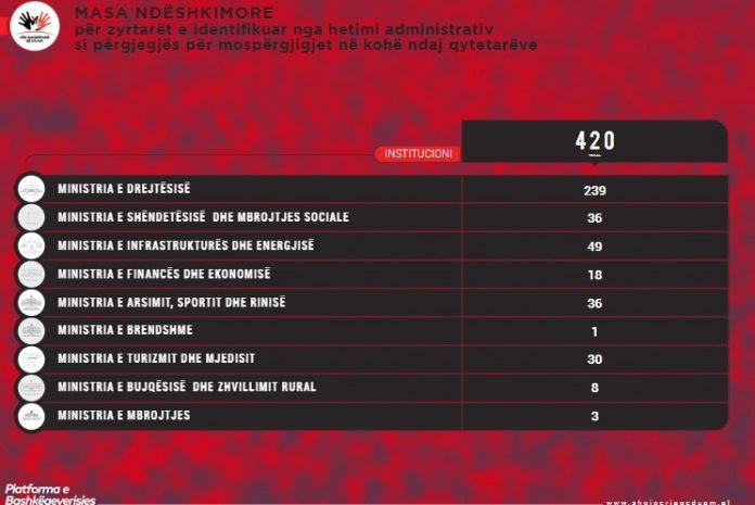 420 masa ndëshkimore janë dhënë këto 10 muaj për zyrtarët e identifikuar nga hetimi administrativ si përgjegjës për mospërgjigjen në kohë ndaj qytetarëve.