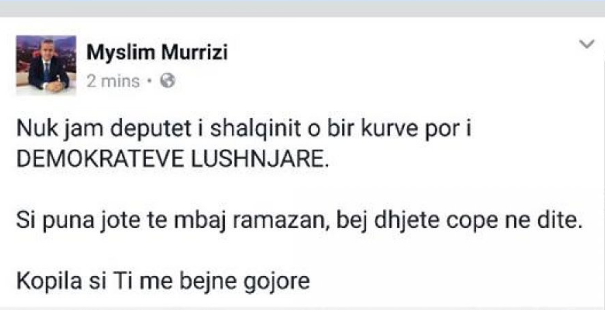 “Nuk jam deputet i shalqinit o bir k*rve por i demokratëve lushnjarë, si puna jote të mbaj Ramazan bëj 10 cop, kopila si ti më bëjnë g*jore”.