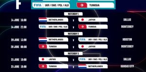 Nëse Shqipëria siguron pjesëmarrjen, debutimi i saj potencial ndaj Tunizisë do të zhvillohet në Monterrej të Meksikës në orën 22:00 të datës 14 qershor sipas orës amerikane, që për publikun shqiptar do të thotë ora 04:00 e mëngjesit të 15 qershorit.