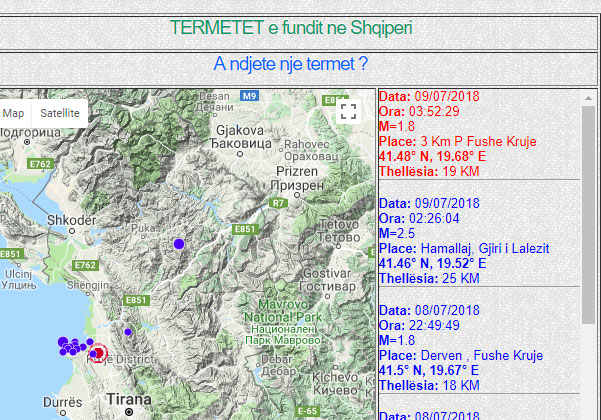 Tërmeti i parë është regjistruar në orën 02:26 në Hamallaj të Gjirit të Lalëzit, me magnitudë 2.5, ndërsa i dyti në 03:52 në Fushë-Krujë, me magnitudë 1.8. Edhe ditën e djeshme u regjistruan lëkundje gjatë natës, por shumë më të lehta se ai i ditës së mërkurë. Kujtojmë se të mërkurën Tirana u godit nga një tërmet 5.2 ballë, ndërsa Durrësi 5 ballë, ndërsa lëkundjet u ndjenë në disa rrethe të vendit.