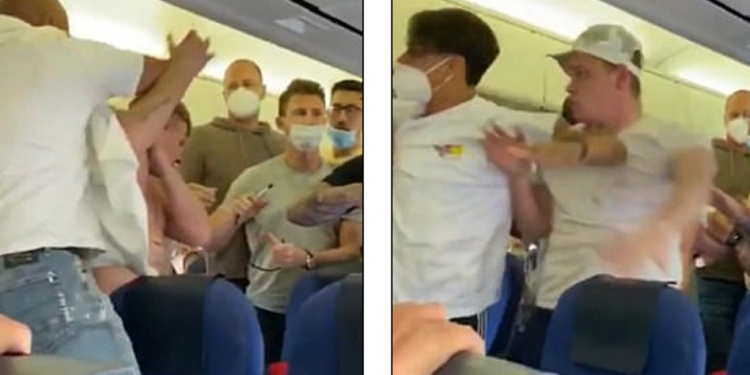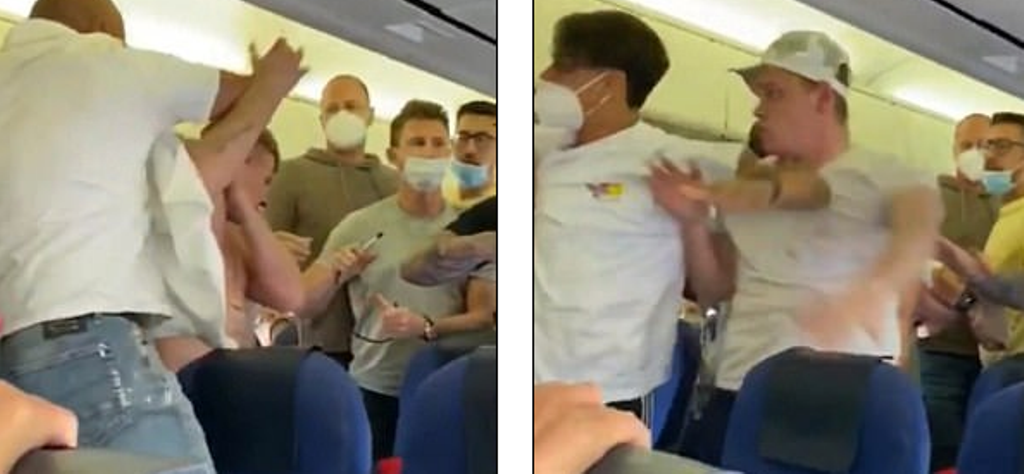 Pamjet tregojnë dy pasagjerët anglezë duke luftuar fizikisht me të tjerët gjatë fluturimit.