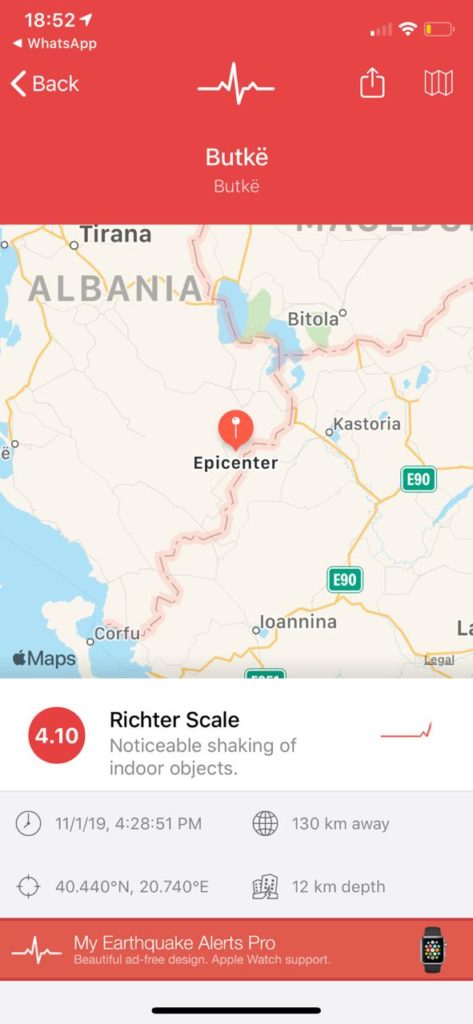 Një tërmet me magnitudë 4.1 ballë është regjistruar para pak minutash në fshatin Butkë në Korçë.