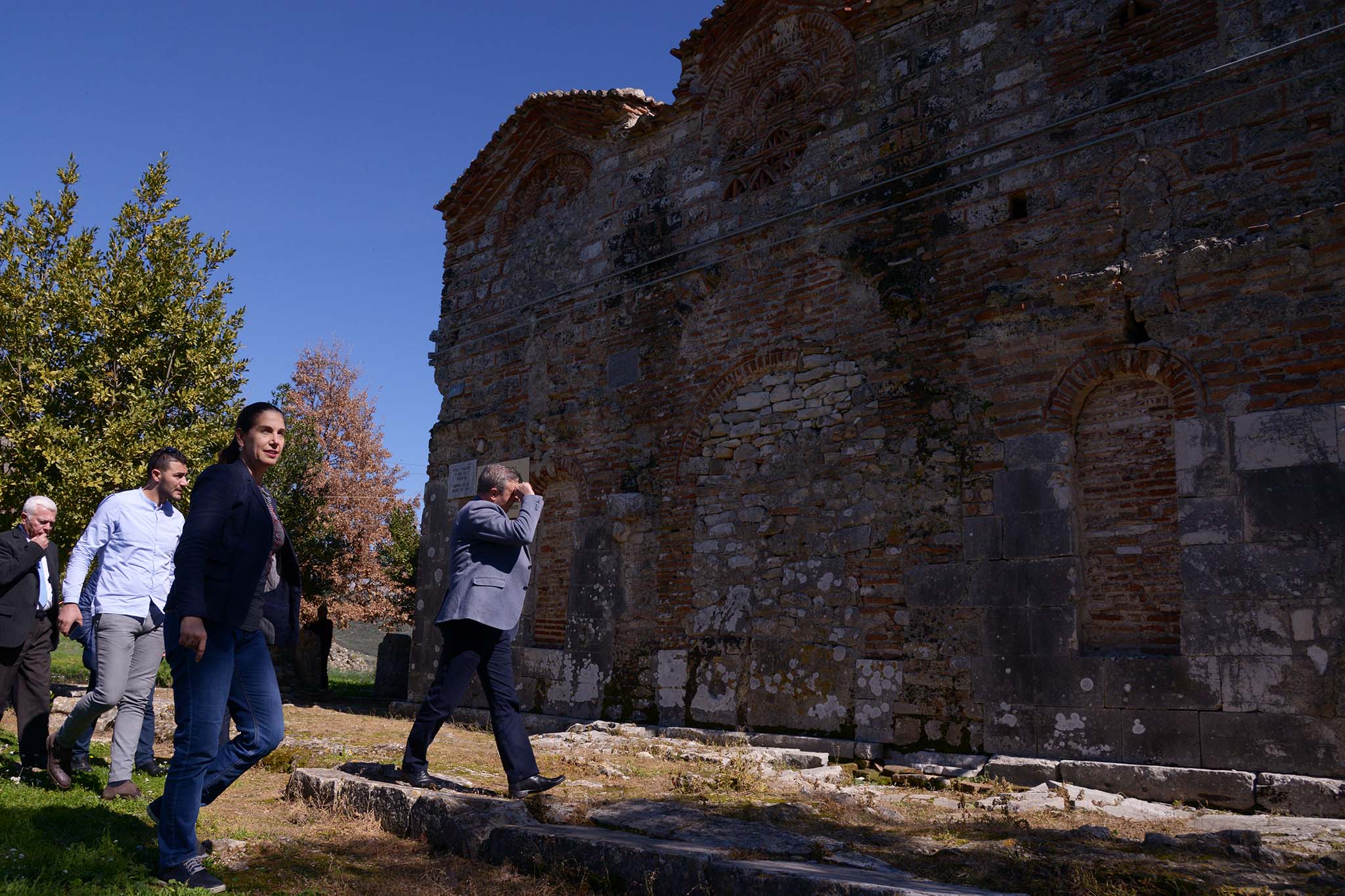 Ndërsa në Finiq, Kumbaro pa nga afër ecurinë e punimeve restauruese e konsoliduese në kishën e “Shën Kollit” në Mespotam, një ndër kishat më të mëdha dhe më të vjetra të periudhës bizantine që ruan vlera të rralla. Muret e jashtme të saj janë të ndërtuar nga gurë gëlqerorë të mëdhenj, ndërsa dallohet për zbukurimet dhe mozaikët me motive shtazore gjithashtu dhe për zbukurimet me tulla të mureve të jashtëm.
