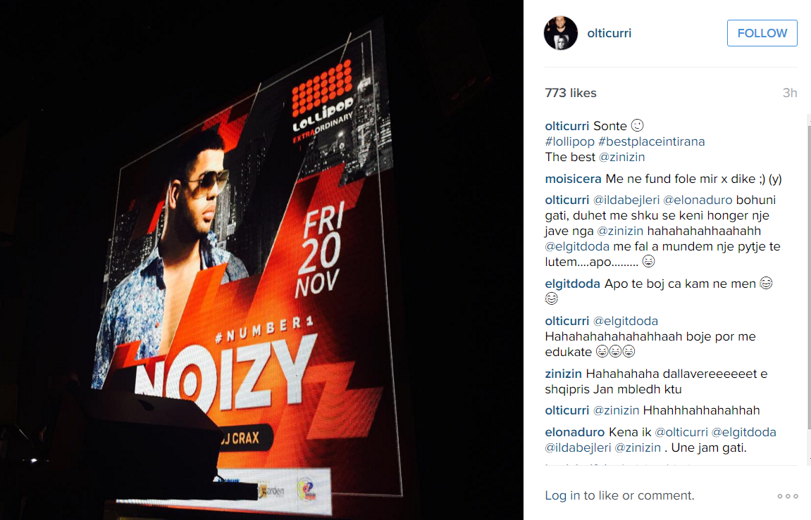 Në instagramin e Olit Currit kanë nisur thumbimet mes tij dhe Noyzit. Curri ka postuar një foto të reperit, i cili do të përformojë në një prej clubeve të Tiranës. Gazetari ka etiketuar edhe dy vajza në postim, Ilda Bejlerin, e njohur për bukurinë e saj si dhe Elona Duron, të cilat i fton të shkojnë në performancën e Noyzi-t.