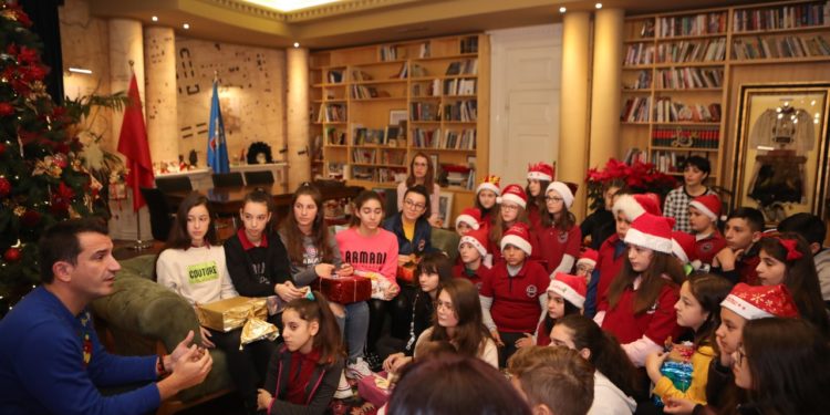 Kryebashkiaku Veliaj priti sot një grup nxënësish nga shkolla 9-vjeçare “Vasil Shanto”, të cilët iu bashkuan Operacionit “Kutia” dhe kanë dhuruar lodra, veshje dhe libra për bashkëmoshatarët e tyre, që edhe ata të festojnë të gëzuar festat e fundvitit.