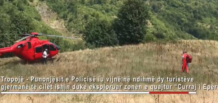 Pas shumë orësh udhëtimi në këmbë, në zonë të vështirë, punonjësit e Policisë bëjnë të mundur gjetjen dhe transportimin disa orë me krahë dhe më pas me helikopter drejt Tiranës, të 2 turistëve gjermanë.