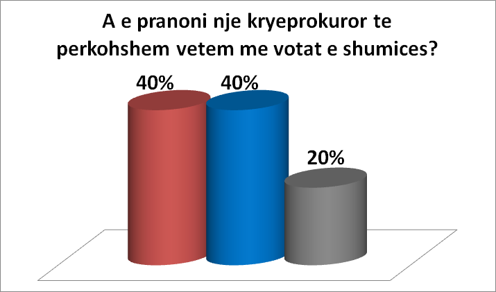 Nga sondazhi rezulton se 40% e të anketuarve e pranojnë një kryeprokuror të përkohshëm vetëm me votat e shumicës parlamentare, ndërsa 40% nuk e pranojnë. Ndërkohë, 20% e të anketuarve janë të pavendosur në opinionin e tyre.