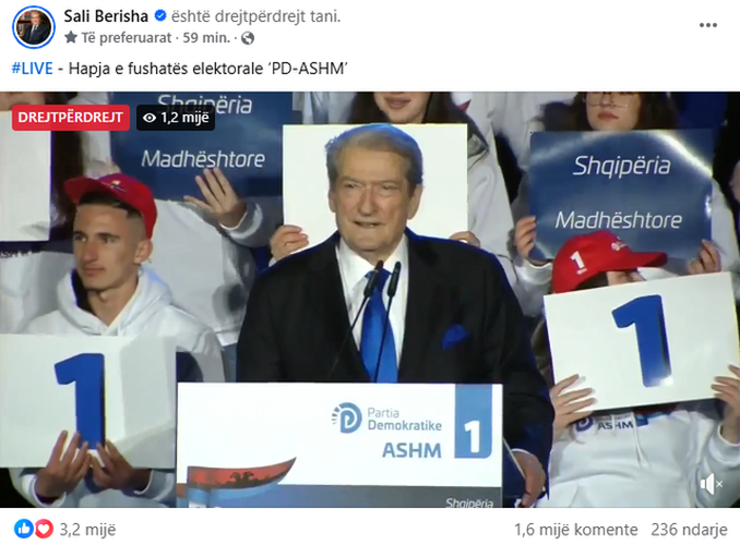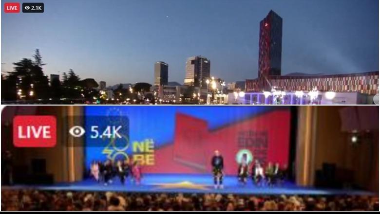 Të dy forcat politike ishin live në Facebook, por me një diferencë të madhe në shikueshmëri. Kryeministri Rama po ndiqej drejtpërdrejt nga të paktën 5 mijë e 40 qytetarë, ndërsa Berisha nga vetëm 2 mijë e 100, pavarësisht se supozohet që mobilizimi dhe kurioziteti i mbështetësve të tij sot të ishte më i madh.