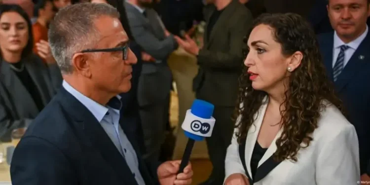 Vjosa Osmani: Më mirë të them, mes Serbisë dhe Kosovës. E dini që sikur ta thoja këtë para vitit 2023, ndoshta shumë njerëz nuk do ta merrnin edhe aq seriozisht. Mirëpo pas shtatorit 2023, ku Serbia tentoi një akt agresioni kundër Kosovës, dhe nëpërmjet grupeve terroriste dhe paramilitare të cilët i futi në Kosovë, kishte për qëllim të aneksonte veriun e Kosovës, sipas planeve të Putinit dhe metodave të tij. Tashmë është e qartë që Serbia e ka pikërisht atë qëllim, dhe në arritjen e atij qëllimi Serbia vazhdimisht përdor taktika destabilizuese dhe jo vetëm kundër Kosovës, por edhe kundër Bosnjë e Hercegovinës dhe shteteve të tjera në rajon. Pra, është e qartë që Serbia vazhdon të jetë shtet agresor, vazhdon të jetë dorë e zgjatur e Putinit, sepse është qëllim i Rusisë dhe ka qenë tradicionalisht dhe historikisht qëllim i Rusisëqë të destabilizohet Ballkani Perëndimor, si mjet destabilizimi për gjithë kontinentin europian. Nuk është që ato gjëra vetëm po i themi, ato gjëra kanë ndodhur në shtator 2023. Pastaj në nëntor 2024. Po po, akt agresioni ka qenë në Banjskë. Në nëntor 2024 ka pasur sulm në Ibër Lepenc, mirëpo qëllimi ka qenë që të shkatërrohen mjetet jetike nëpërmjet të cilave Republika e Kosovës furnizohet me ujë, me energji elektrike, me ngrohje e të tjera dhe nëpërmjet kësaj të dëshmohet se përdoren edhe metoda hibride të sulmeve ndaj Kosovës, jo vetëm ajo ushtria tradicionale që ne e kemi parë në vitet 90-të. Serbia vazhdimisht i provon këtu. Ka pasur tendenca destabilizimi edhe sivjet në pranverë, me ndihmën e aleatëve tanë i kemi parandaluar. Tani ka shumë që nuk duan të tregojnë publikisht se çfarë ka ngjarë. Unë i kam lexuar raportet e institucioneve tona, e di çfarë ka synuar Serbia, e di çfarë ka synuar.