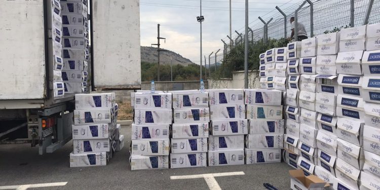 Sekuestrohet një kamion me 636 mijë paketa cigaresh kontrabandë në doganën e Hanit të Hotit. Lajmi është bërë i ditur nga Drejtoria e Doganave.