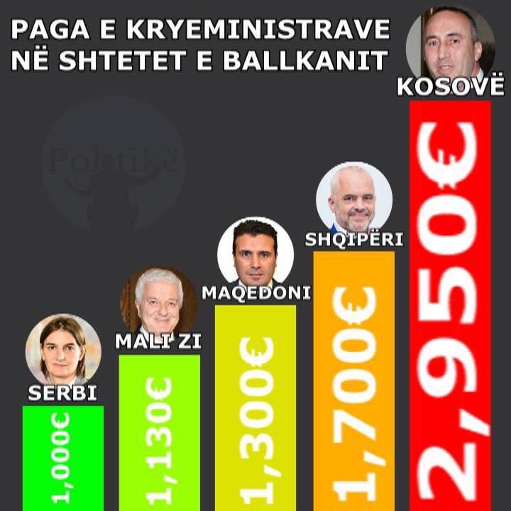 Ramush Haradinaj kryeson si ndër kryeministrat më të paguar në Kosovë edhe në Ballkan, merr pagë vjetore prej më shumë se 2.950 eurosh.