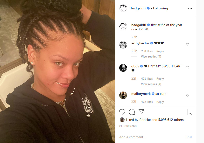 Rihanna ka shfaqet shumë natyrale në foton e parë të vitit të ri.