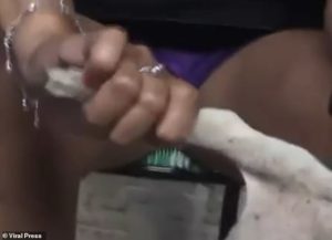 Grupet për të drejtat e kafshëve janë duke u përpjekur të identifikojnë një grua e cila është filmuar duke i djegur fytyrën një qeni të vogël.