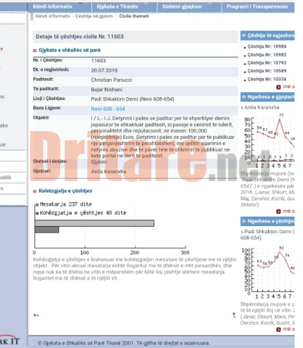 Padia është depozituar në Gjykatën e Shkallës së Parë në Tiranë me datë 20 korrik 2018