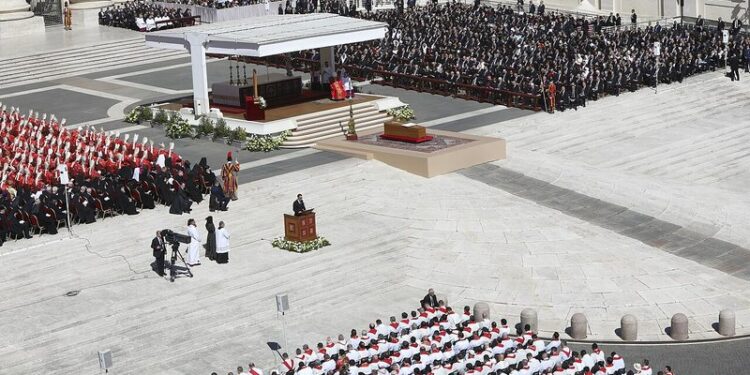A mund të ndikojnë fjalët e fundit të një udhëheqësi të krishterë në zhvillimet në një botë të prekur nga kriza? Në funeralin e Françeskut të shtunën, dekani 91-vjeçar i Kolegjit të Kardinalëve, Giovanni Battista Re, u kujtoi udhëheqësve botërorë se si Papa i ndjerë “ndante vërtet ankthet, vuajtjet dhe shpresat e kësaj epoke globalizimi” dhe për angazhimin e plotë të Papës ndaj emigrantëve, refugjatëve dhe të margjinalizuarve.