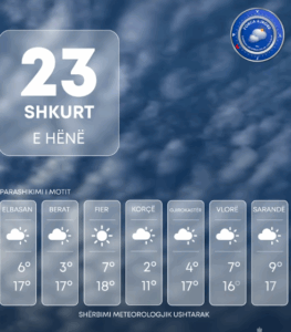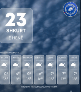 Temperatura maksimale do të kapi vlerën 18 gradë Celcius, ndërsa ajo minimale 0 gradë Celcius.
