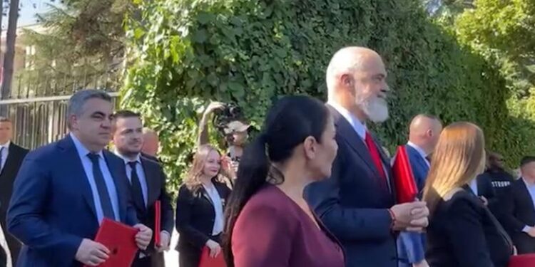 Pas përfundimit të ceremonisë së betimit përpara kreut të shtetit, presidentit Bajram Begaj, ministrat e qeverisë së bashku me kryeministrin Rama u nisën në këmbë drejt kryeministrisë.