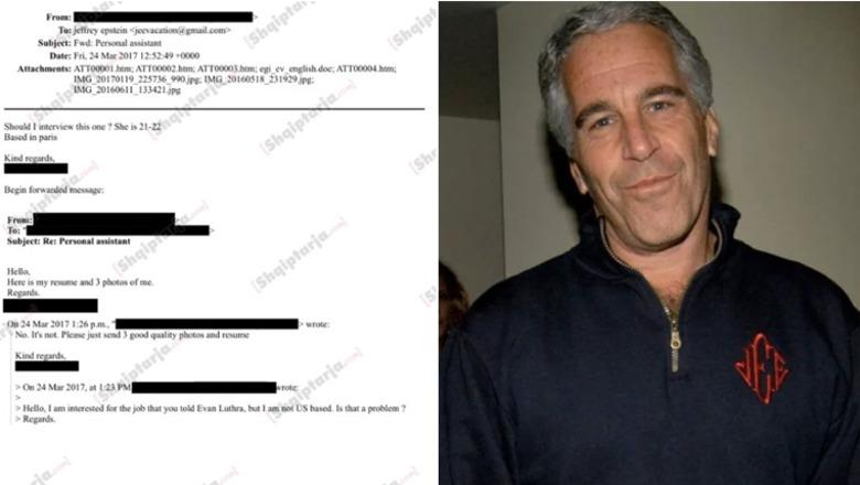Në 3 milionë faqet e reja të publikuara lidhur me dosjen e Jeffrey Epstein shfaqet edhe emri i një vajze shqiptare, e cila rezulton që të ketë aplikuar për një vend pune si asistente personale. Sipas materialeve, rezulton që e reja me iniciale E.T., të ketë aplikuar në mars 2017.