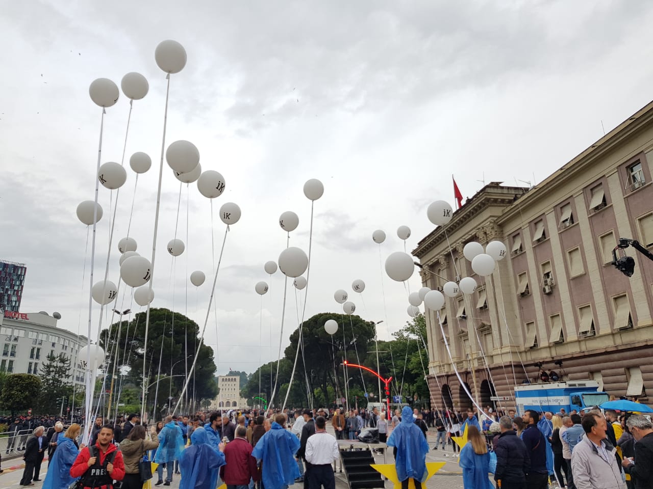 Pamjet e para flasin për një metamorfozë të vërtetë të stilit të tubimit. Nga molotovët, duket se opozita joparlamentare ka ‘përfunduar’ te tullumbacet. Dhjetëra të tillë me mbishkrimin “IK” mbahen në duar nga të pranishmit.