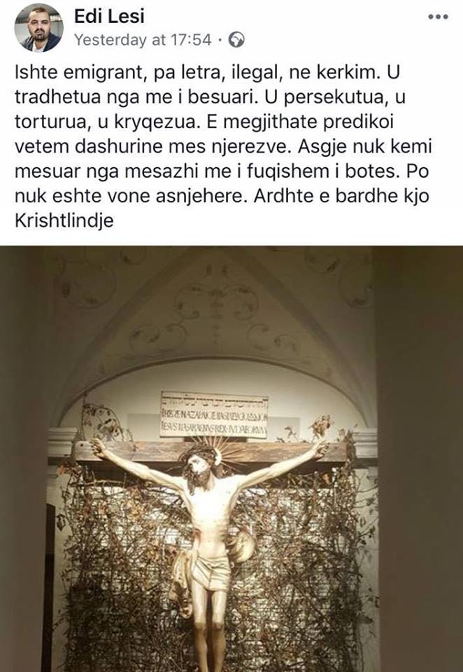 Këshilltari i Lulzim Bashës për mediat, Edi Lesi, thotë se Jezusi ishte emigrant, ilegal dhe pa letra.