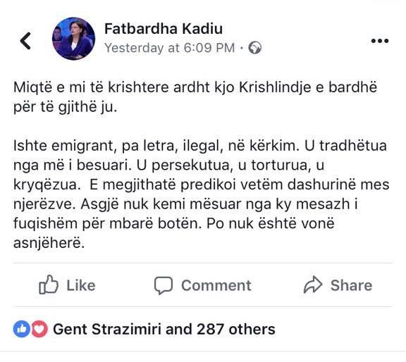 Statusin e tij e ka kopjuar edhe deputetja Fatbardha Kadiu, e cila është edhe më qesharake në urimin e saj.