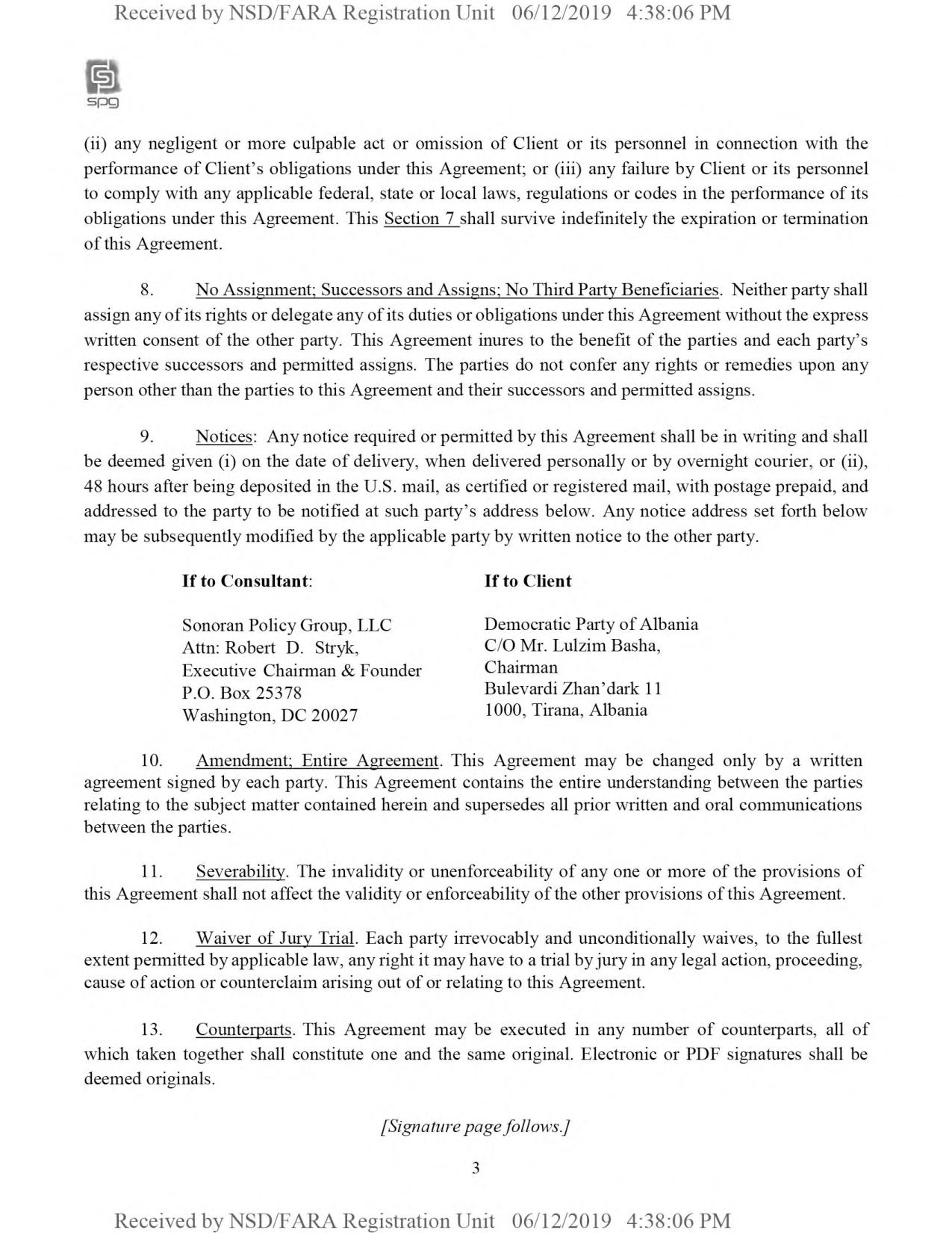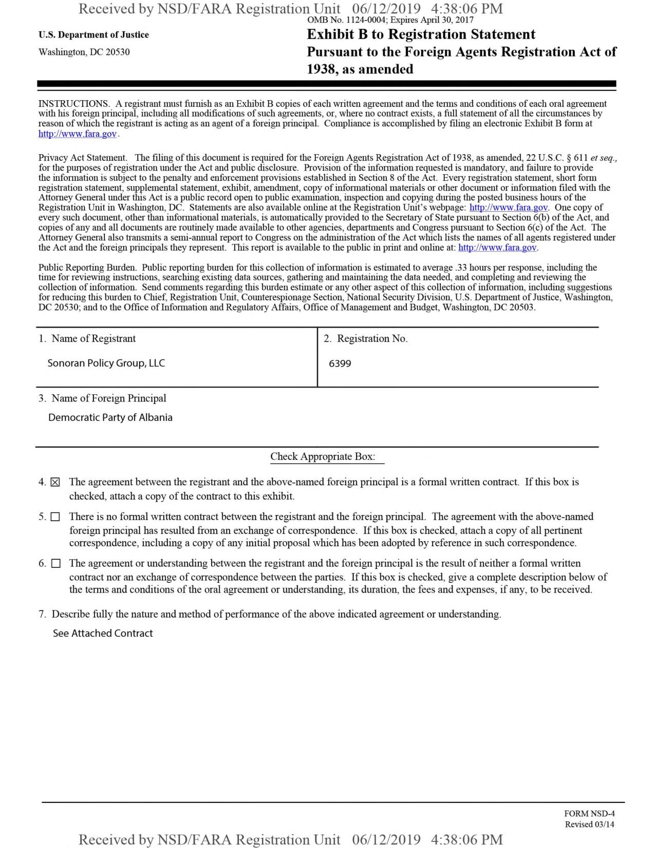 “Konsulenti do të punojë me opozitën shqiptare për të ndërtuan një strategji kundër narkotikëve dhe kundër krimit të organizuar, si dhe të mundësojë takime dhe ndërveprime me zyrtarë të administratës, kongresit dhe pushtetit ekzekutiv në SHBA,” shkruhet në kontratë.