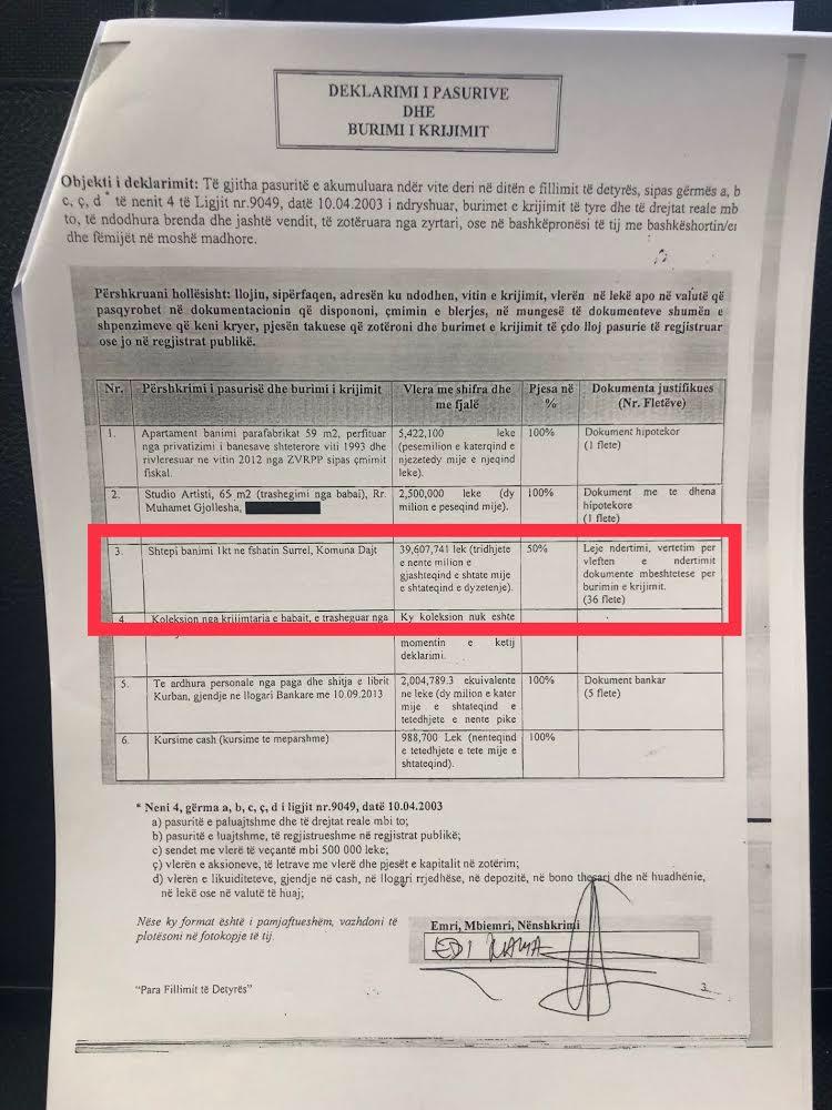 “Edi Rama e nisi karrierën me 10 milionë lekë dhe sot, vetëm vlera e shtëpisë superluksoze në Surrel është deklaruar 400 milionë lekë. Ai thotë se tokën ku është ndërtuar shtëpia ia ka blerë gruaja. Dasmën e bën me kursimet e gruas, shtëpinë superluksoze e paska ndërtuar me kursimet e gruas. Madje edhe në bankën me pronarë fantazëm në parajsa fiskale e ka vënë në emër të gruas. Edi Rama ka bërë zgjedhjen më burracake, duke vendosur që për të gjitha akuzat mbi pasurinë e tij marramendëse, të përdorë gruan si mburojë. Kryeministri ka detyrimin të shpjegojë pse luksi real dhe pasuria e tij nuk përputhen me deklaratën e pasurisë”, deklaroi Zhupa.