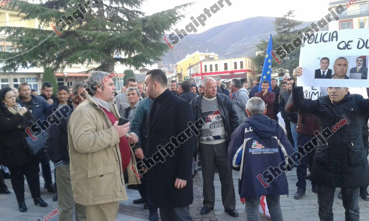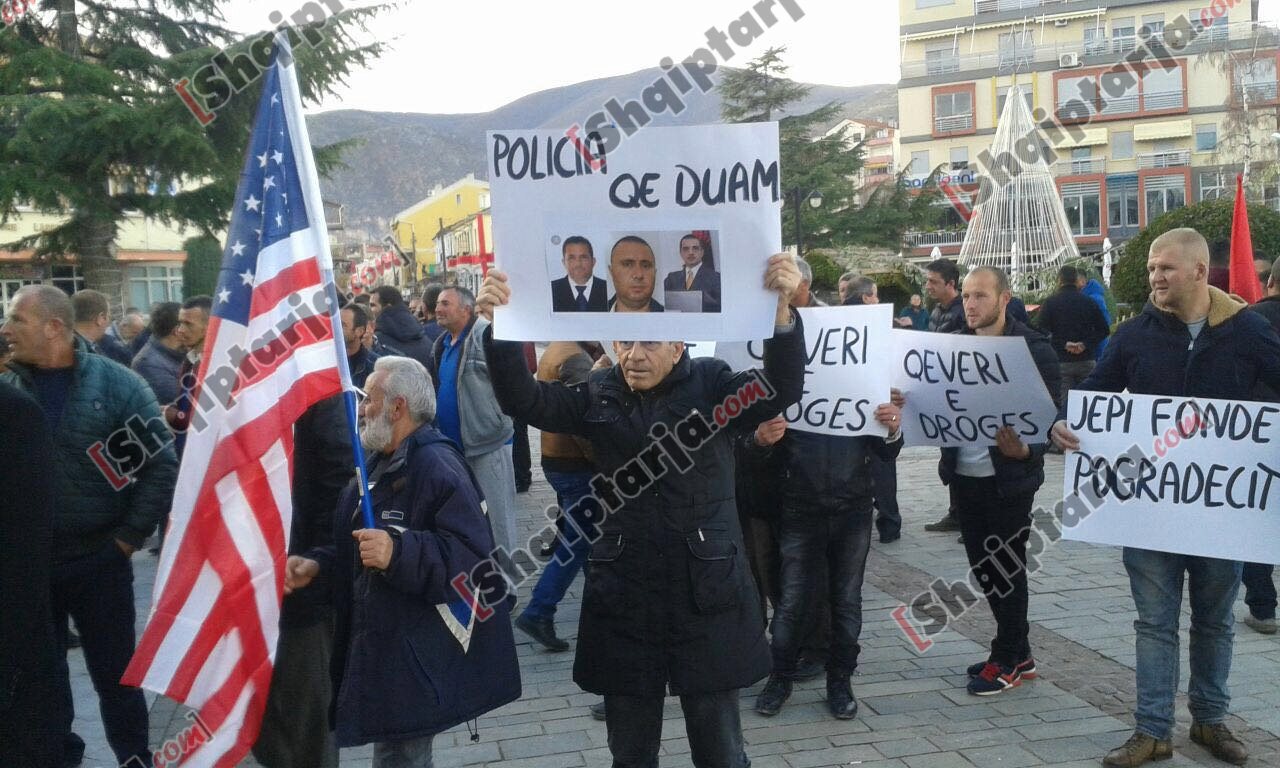 Teksa Rama dhe Zaev po zhvillonin takimin, jashtë ndërtesës protestohej nga PD. Me pankarta në duar ku shkruhej “Qeveri e drogës”, “Jepi fonde Pogradecit” dhe me foto të Klement Balilit, Moisi Habilajt dhe Saimir Tahirit të cilat shoqëroheshin me mbishkrimin “Policia që duam”, e me thirrje kundër qeverisë, qytetarët qëndruan për disa minuta përpara ndërtesës ku po zhvillohej takimi. I pranishëm mes protestuesve ishte edhe deputeti i PD, Klevis Balliu. Ai tha se jemi këtu për të denoncuar padrejtësitë e kësaj qeverie.