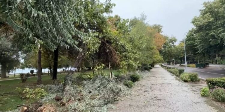Stuhia me erë të fortë që goditi mesditën e së shtunës vendin tonë ka shkaktuar thyerje pemësh në qytetin e Pogradecit dhe rrethinat e tij.