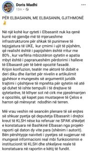 Reagimi i plotë nga Doris Madhi (anëtare e Këshillit Bashkiak Elbasan)