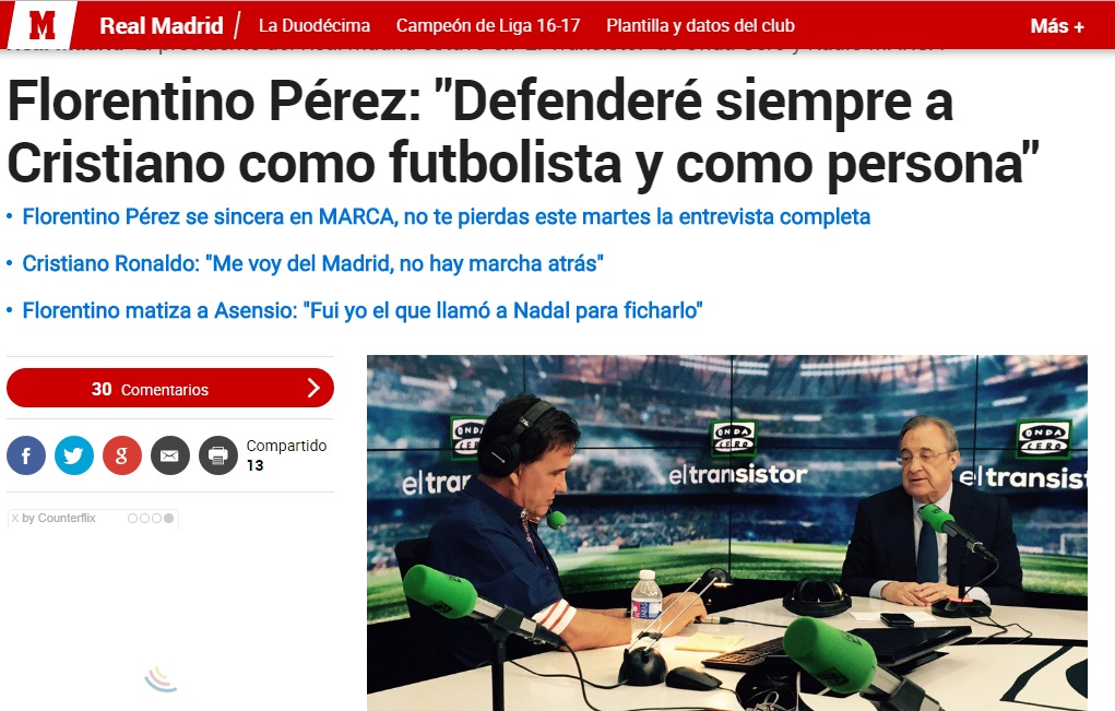 “Do ta mbroj gjithmonë Crisianon, si person dhe futbollist. E njoh shumë mirë, është djalosh dhe njeri shumë humanitar”.“Nuk kemi pranuar oferta nga asnjë skuadër, as për Ronaldon as për James apo edhe për Morata, Për asnjë lojtarë”.